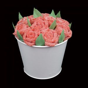 Composition de 12 roses en ceintures acidulées à la fraise.