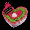 Ce cœur est composé de cœurs de fraise, de cerises acidulées Haribo, de cœur de pêches Haribo, de fraises lisses, de lèvres à la cerise et de guimauve.
